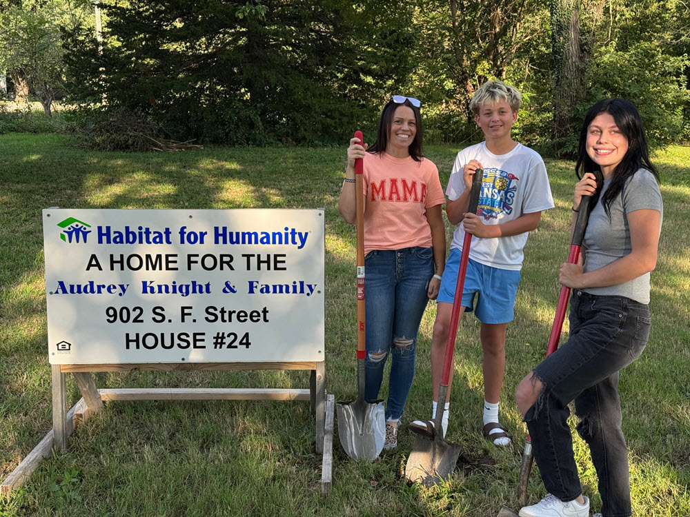 Members of Arkansas City's Habitat for Humanity Board, as well as family and friends of the Knight and Mundy families, came together for a peaceful evening on September 18th at 902 South F Street to celebrate breaking ground on the 24th Habitat Home to be built in Arkansas City. The new home will provide a safe and affordable home for Audrey Knight and her two children - Laken, age 16, and Jaxon, age 13. Audrey and her children each used a shovel to signify work beginning on the home.